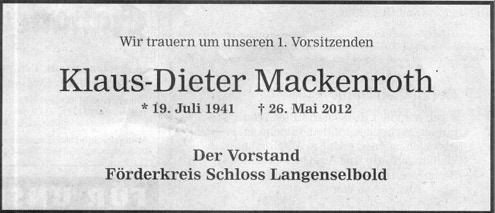 Der Förderkreis Schloss Langenselbold e.V. lädt zur Jahreshauptversammlung ein, Sie findet statt am Freitag, 24. Februar 2012, um 19 Uhr,